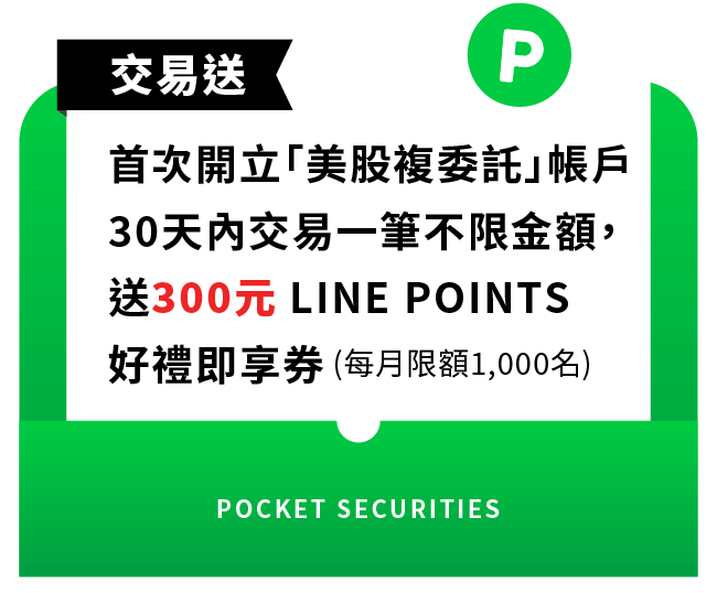 現在開戶享台、美股超優惠手續費,詳細費率請見智能客服,或洽客服專線0809-089-001 與口袋證券LINE官方帳號。(直接點選即可加入)