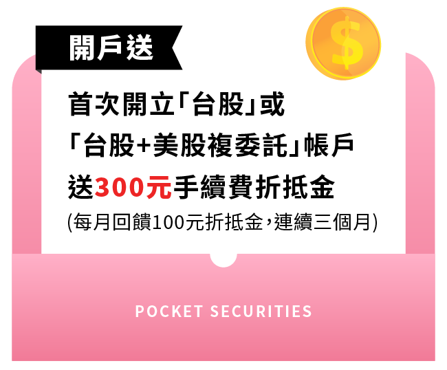 現在開戶享台、美股超優惠手續費,詳細費率請見智能客服,或洽客服專線0809-089-001 與口袋證券LINE官方帳號。(直接點選即可加入)
