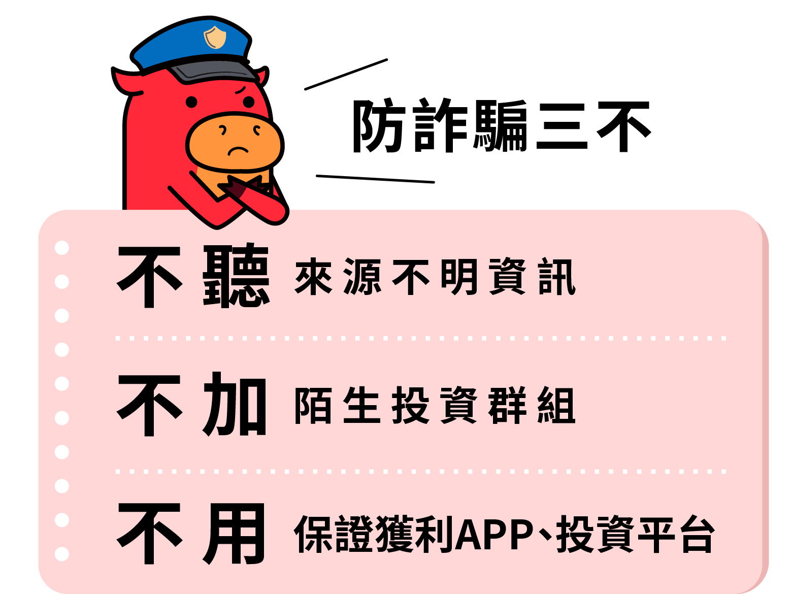 此外刑事局長也重申防詐五不: