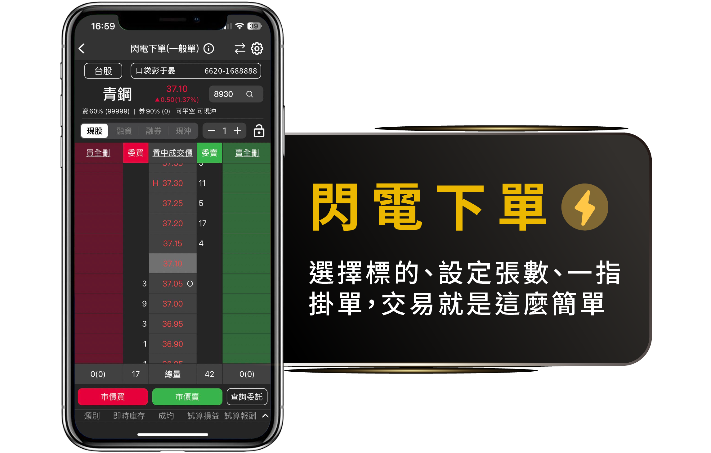 進入標的頁面後,點擊右上方的"閃電"標示,進入閃電下單模式