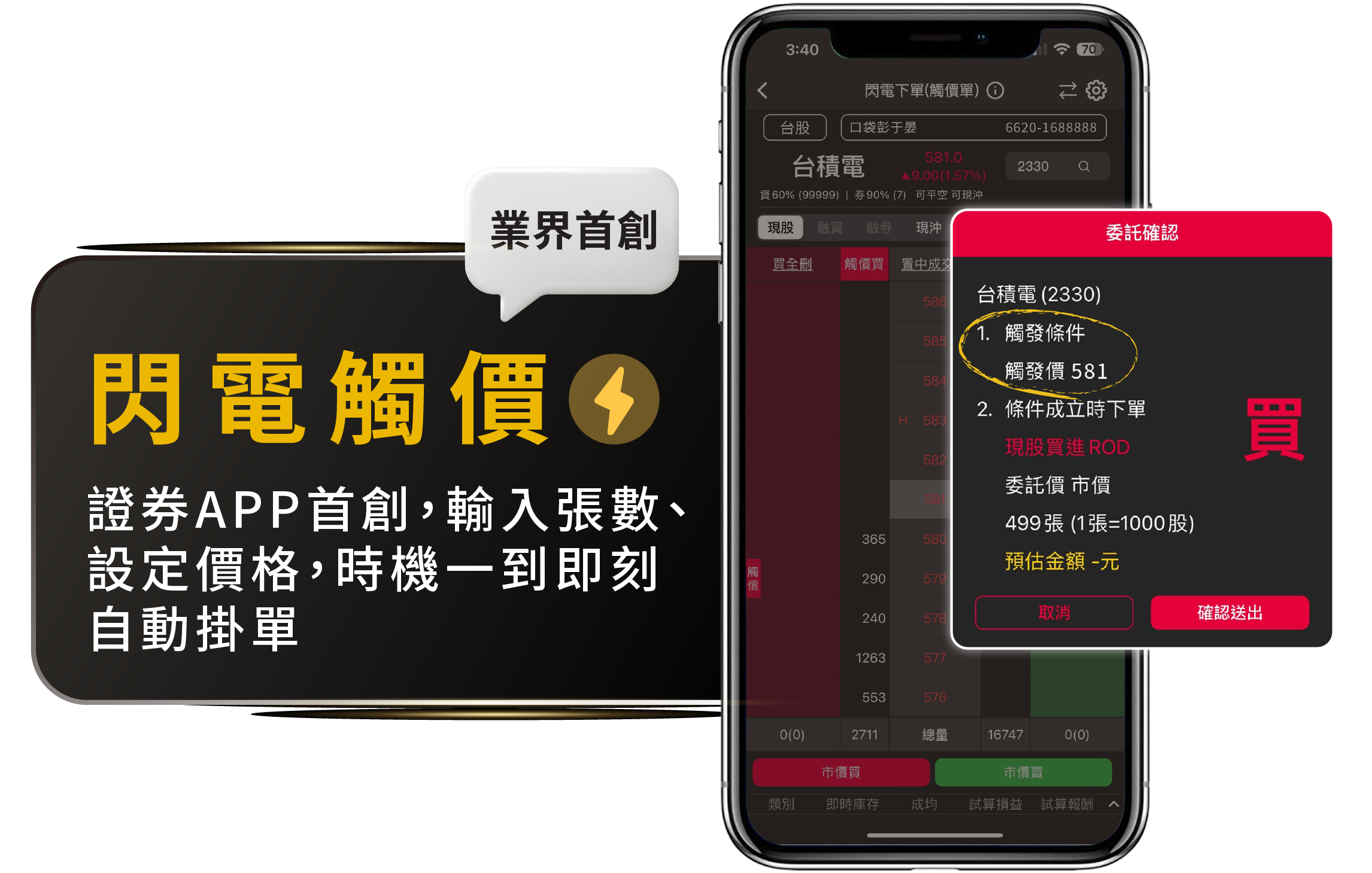 點擊右上方的⇆圖示,即可切換為閃電觸價模式