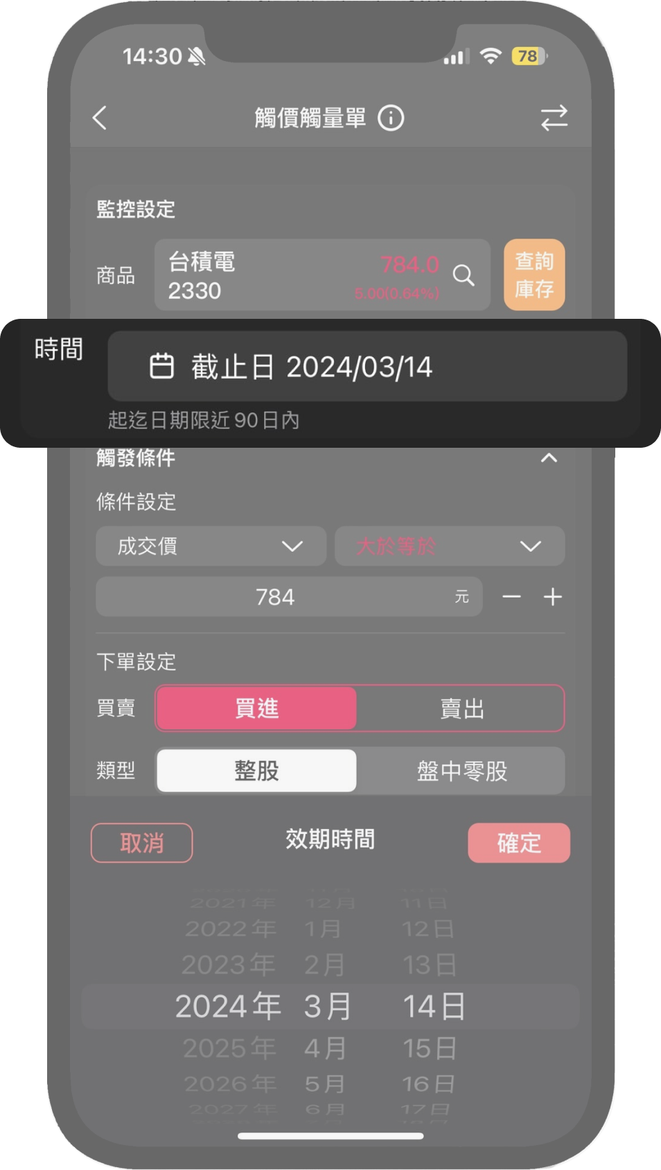 由系統根據觸發條件執行90天的買賣時機監測,並能在條件成立時自動下單,讓投資人不用隨時盯盤就能安心交易。
