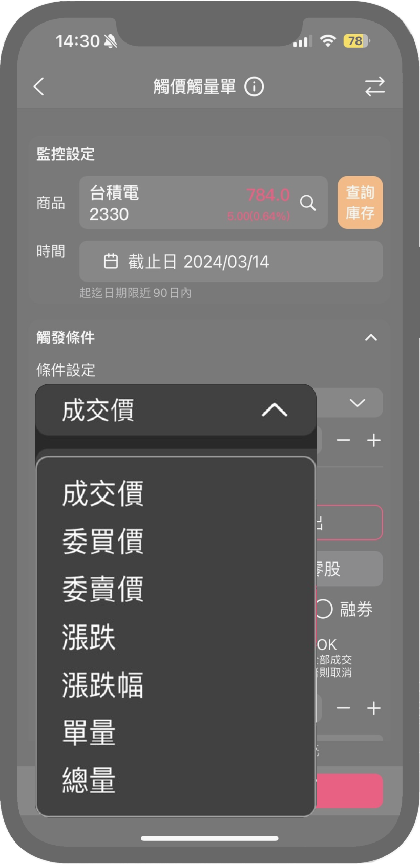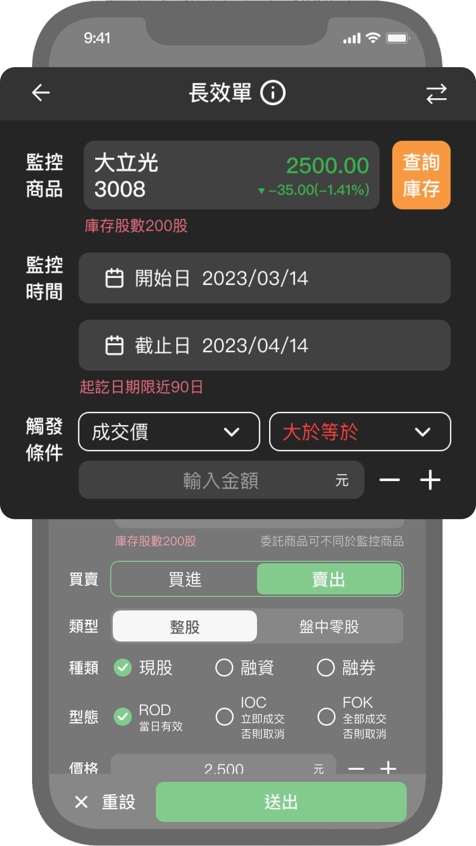 已經選好目標又不想買在高價嗎? 設定長效單 讓口袋為你天天監控目標! |