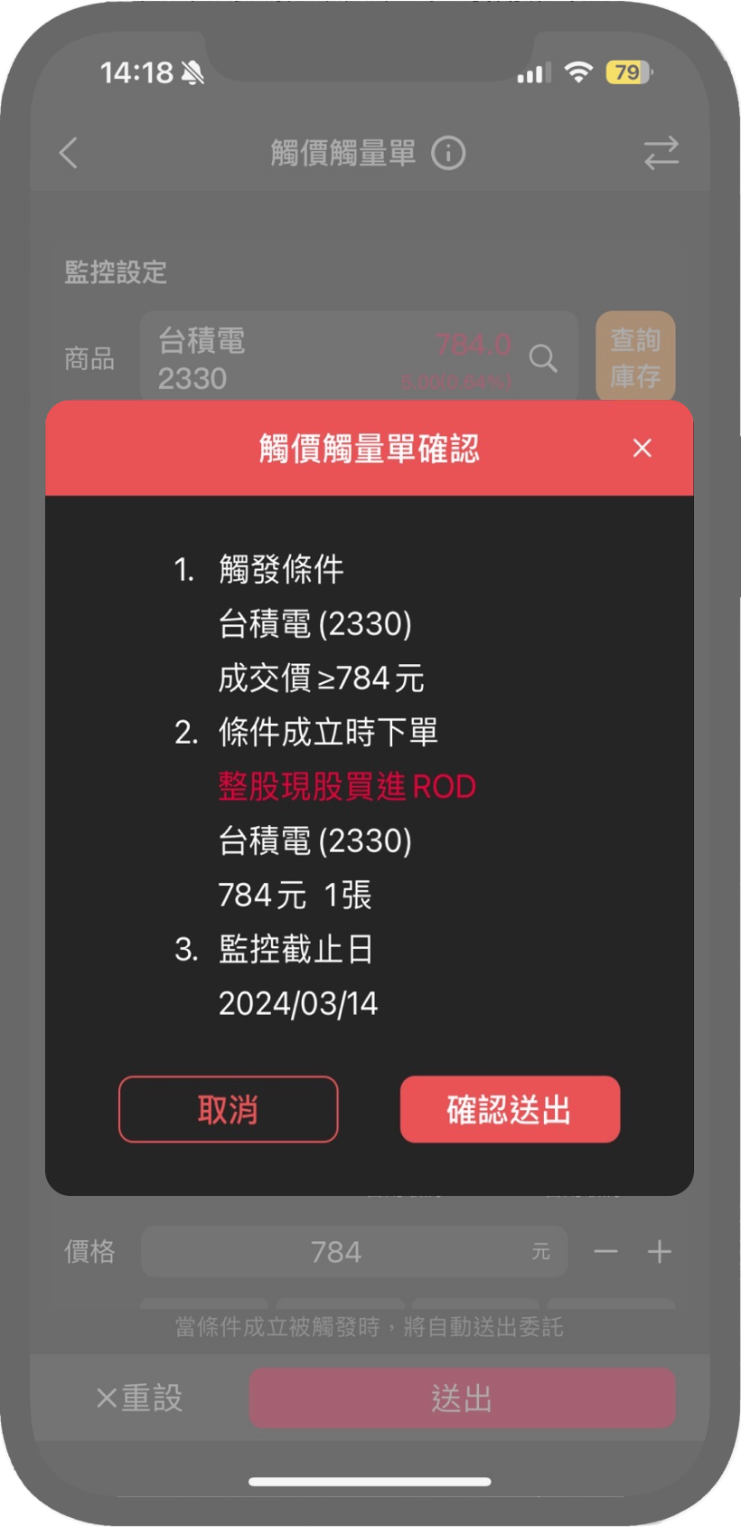 會。只要條件達到時會觸發下單,並通知系統進行推播通知。