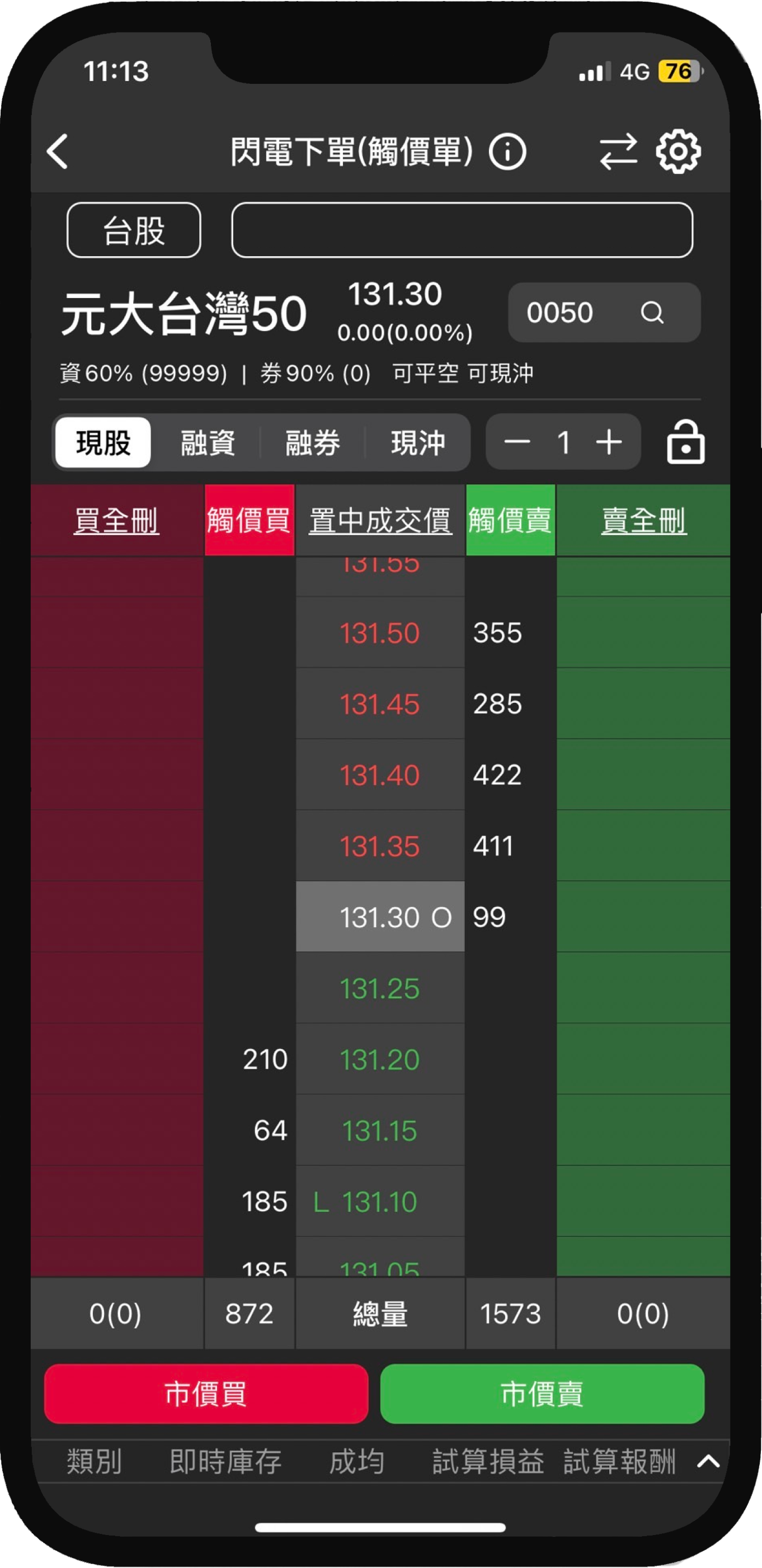 2. 進入下單匣,點擊上方第三個智慧單功能鍵